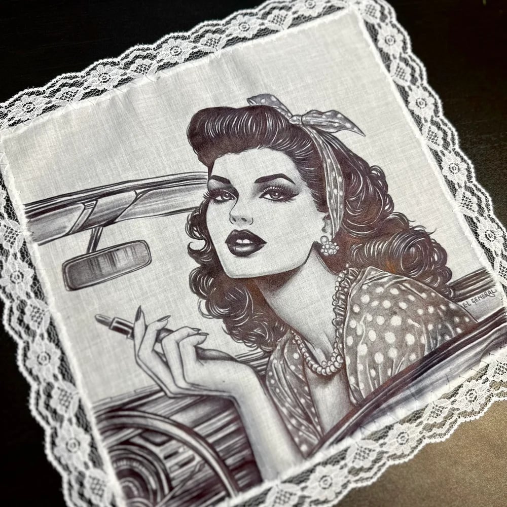 35cmx35cm Print PAÑO on a vintage handkerchief